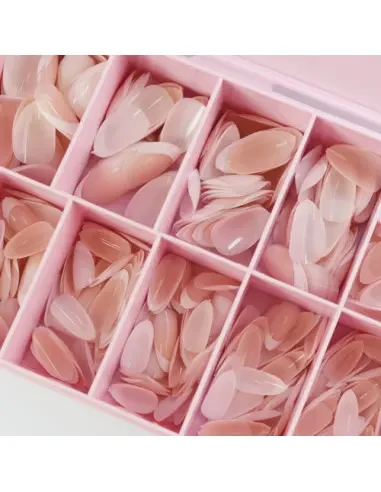 Dy kuti të reja me nga 600 copa French Gel Tips me mbulim të plotë, në 15 madhësi të ndryshme për t’iu përshtatur çdo thoi në mënyrë perfekte!